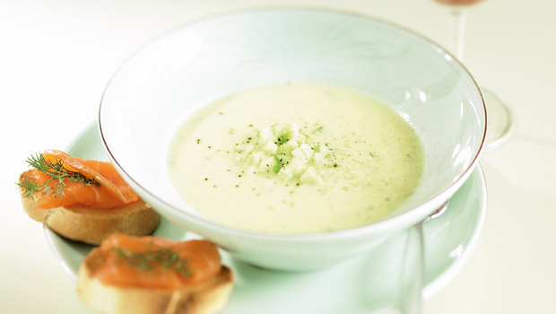 Das Perfekte Dinner Rezepte Kalte Gurkensuppe Mit Warmen Knoblauchcroutons
